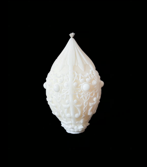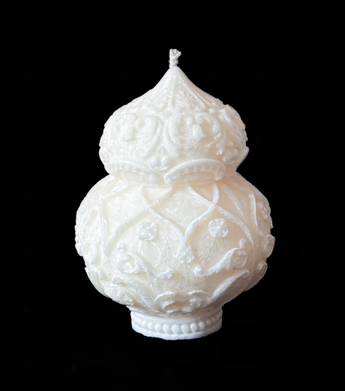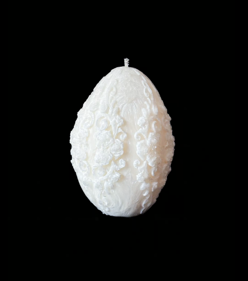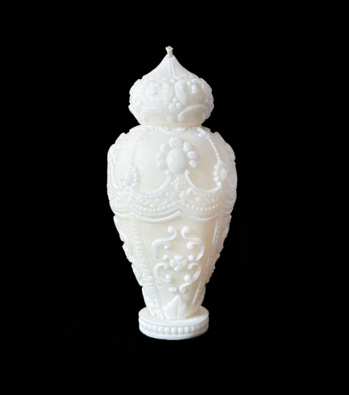 Świeca dekoracyjna z delikatnymi zdobieniami, idealna do eleganckich, kobiecych wnętrz. Zachwyca formą i dodaje luksusowego charakteru każdej przestrzeni.