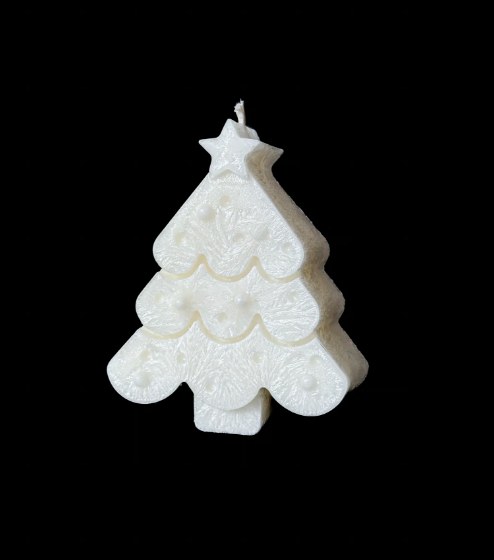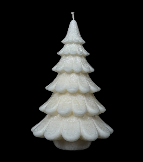 Świąteczna świeca dekoracyjna w kształcie choinki. Elegancki akcent do sezonowych aranżacji, który przyciąga wzrok i dodaje wnętrzu luksusowego charakteru.