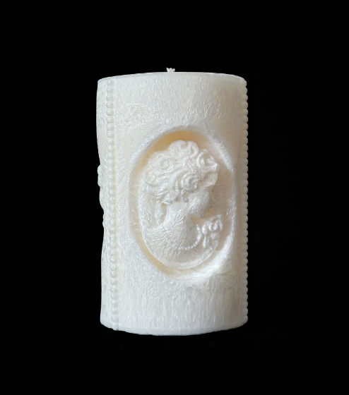 Klasyczna Świeca Ozdobna Lady z reliefami popiersi kobiety w stylu antycznym. Symbol delikatności, siły i ponadczasowego piękna, idealna do eleganckich i vintage wnętrz.
